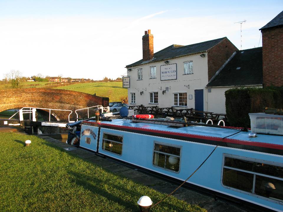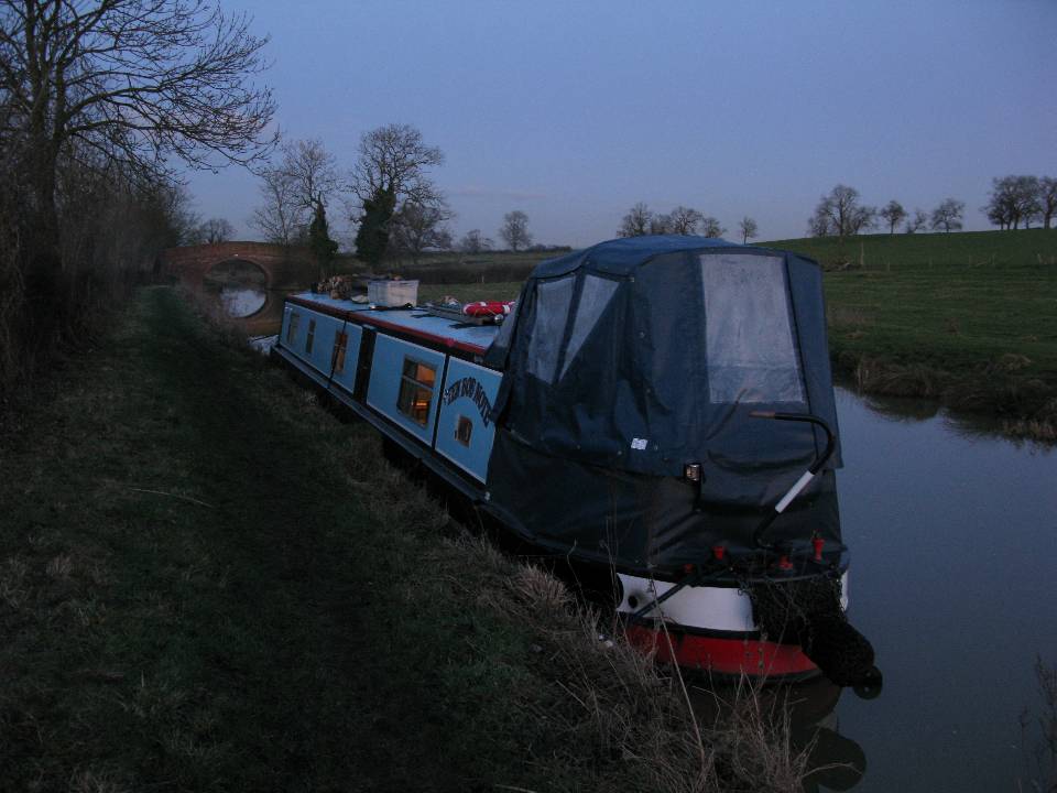 Wednesday 16th January 2008 Location: Yelvertoft, Northamptonshire, Grand Union Today: 10 miles, 10 locks. Total distance: 1039 miles. Total locks: 681 A busy day today. Pulled the pins around 08:30 and headed up through the Braunston locks. A lovely day after all of the rain we had yesterday. Braunston tunnel was surprisingly dry after the heavy rains although Crick tunnel was a bit on the wet side. We arrived at the Watford flight just as two boats were coming down so all of the locks were in our favour. Passed nb Balmaha near Crick and had a quick chat while passing. Forgot to take a photo!! We moored up at around 16:30 in a lovely quiet spot within walking distance of Yelvertoft. We moored in the exact same spot a couple of years ago. There is a handy shop in the village and a very good butcher. The weather forecast for the next few days is not good – more rain and winds. We will probably stop here until the weather improves – or until we need water. Friday 18th Spied an old dead tree in the field opposite us. Went over for a look with the bow saw. Cut off a few choice lengths. Out with the chain saw and axe in the afternoon – the lengths of tree are now nice logs – see photos below. There is no excuse for being cold if you have a stove that can burn wood. Current mooring - getting dark Sunset at mooring Admiral Nelson - Braunston