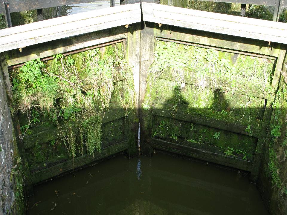Morer water coming 'through' the gate than through the paddles. The gate looks as if it is just about to fall apart!!