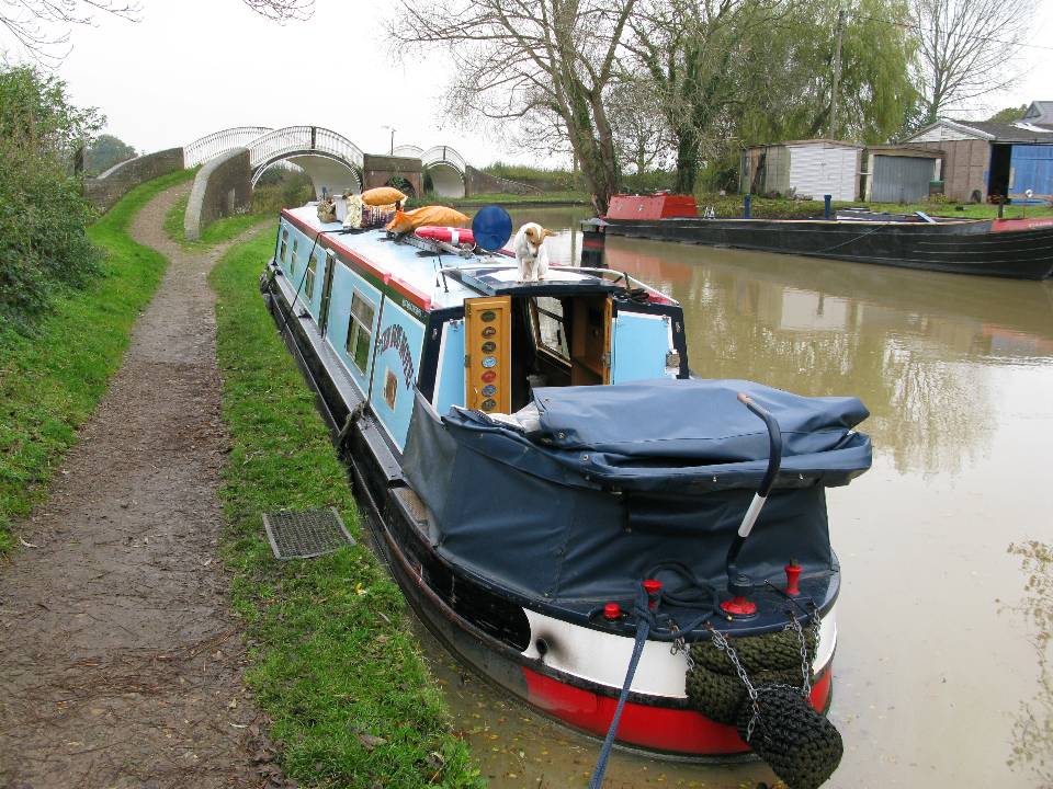 Monday 3rd November 2008 Location: Braunston, Northamptonshire, Grand Union Canal Today: 1 miles, 0 locks. Total distance: 1846 miles. Total locks: 1258 Well, we had a lovely peaceful weekend moored about a mile north of Braunston. I think that in the four nights that we were there, only 3 people passed the boat on foot. Archie and Mabel had almost nothing to bark at. Pulled the pins around 08:00 and moved the short distance down into Braunston to fill up with water. After leaving the water point, we noticed a good mooring spot just by the junction of the Grand Union and Oxford canals. We had decided that if we found a nice mooring spot, we would moor up for the day and get the bus into Daventry for a bit of a wander around. Even at this time of year, sometimes it is difficult to find a good mooring spot in Braunston – we were lucky this morning. The tow path is like a bog in many places after the rain over the weekend. The mud wouldn’t be such a problem if it wasn’t for the dogs. The spot where we are moored has a good clean and solid stretch of tow path beside it. Well, we are off into Daventry in a moment to see if we can find some re-chargable batteries for the speakers that are connected to the MP3 player. Ordinary batteries only last about six months so re-chargables will work out cheaper in the long run. UPDATE: Went to Daventry and had a wander around the shops, no re-chargable batteries of the type I wanted to be had. Will probably have to order them from the web and have them delivered to Cornwall. Going out for a meal at the Old Plough tonight. It will be interesting to see if the food is better tonight than it was the last time we visited a month ago. We have eaten there many times and always found it very good. Hopefully our last visit there was just an off night?? Tuesday 4th We were going to head off towards Warwick this morning but as the weather was a bit on the miserable side, we decided to stay on here for the day and do the washing etc. Was sitting here at the computer when there was a tap on the window and Ann and Molly off nb MOORE 2 LIFE appeared. What a very pleasant surprise to see them. We were chatting away, catching up on the events of this past summer. We happened to ask Ann if she had seen anything of Bob or Lynn off nb Moriarty as they moor here in Braunston the answer was no. A couple of minutes later, who should turn up at the window – Bob off nb Moriarty. More chatting and catching up took place, a very pleasant morning. Bought a chocolate cake up the village this morning. They are baked by a local bakery. We have tried the coffee version before (lovely) but this is the first time that we have managed to get hold of the chocolate flavor. Looking forward to trying it at lunch time. Will have to go and find a flight of locks to work it off!! Current Mooring