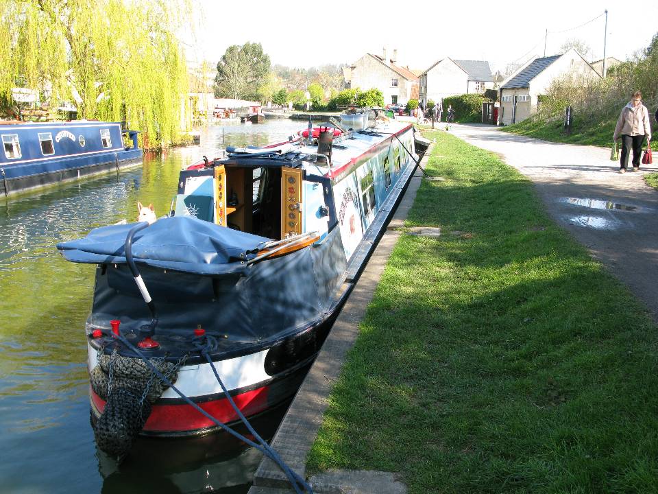 Monday 14th April 2008 Location: Bradford on Avon, Wiltshire, Kennet & Avon Canal Today: 5 miles, 0 locks. Total distance: 1303 miles. Total locks: 866 Time to move on and top up with water again. We passed a boat just west of Melksham with a novel answer to the problems of running out of water quickly – photo below. Pulled the pins around 07:30 on a lovely sunny morning. Travelled westward and moored up at Bradford on Avon 24 hour moorings just beside the water point and facilities. Filled the water tank then walked the short distance back to Sainsbury’s to do some shopping. The sun was shining when we entered Sainsbury’s. Half an hour later as we were about to leave, the heavens opened and it poured down. The journey between Melksham and Bradford on Avon was a slow one due to the number of moored boats along the way. We haven’t seen so many boats moored in big long lines for a long time. We tried to stop to pick up the dead tree that we found near Melksham but the closest we could get the boat into the side was about 4 feet due to lack of depth – shame as it was a lovely length of wood. We are down to about 3 days worth of logs now – good job we are well stocked up with coal. I had an email from a guy called Andrew in Australia to ask if all was well with this web site. Andrew has been seeing the notices advising of new content but has been unable to see any new content on the site since April 6th. I have no idea what the problem can be as I am pretty sure that the site is up and running OK. The site is hosted with 1and1 and I have always found their hosting services to be very reliable. UPDATE - Monday PM: We walked into the town with the dogs. A very interesting place. Some lovely old buildings. Photos below. Current Mooring