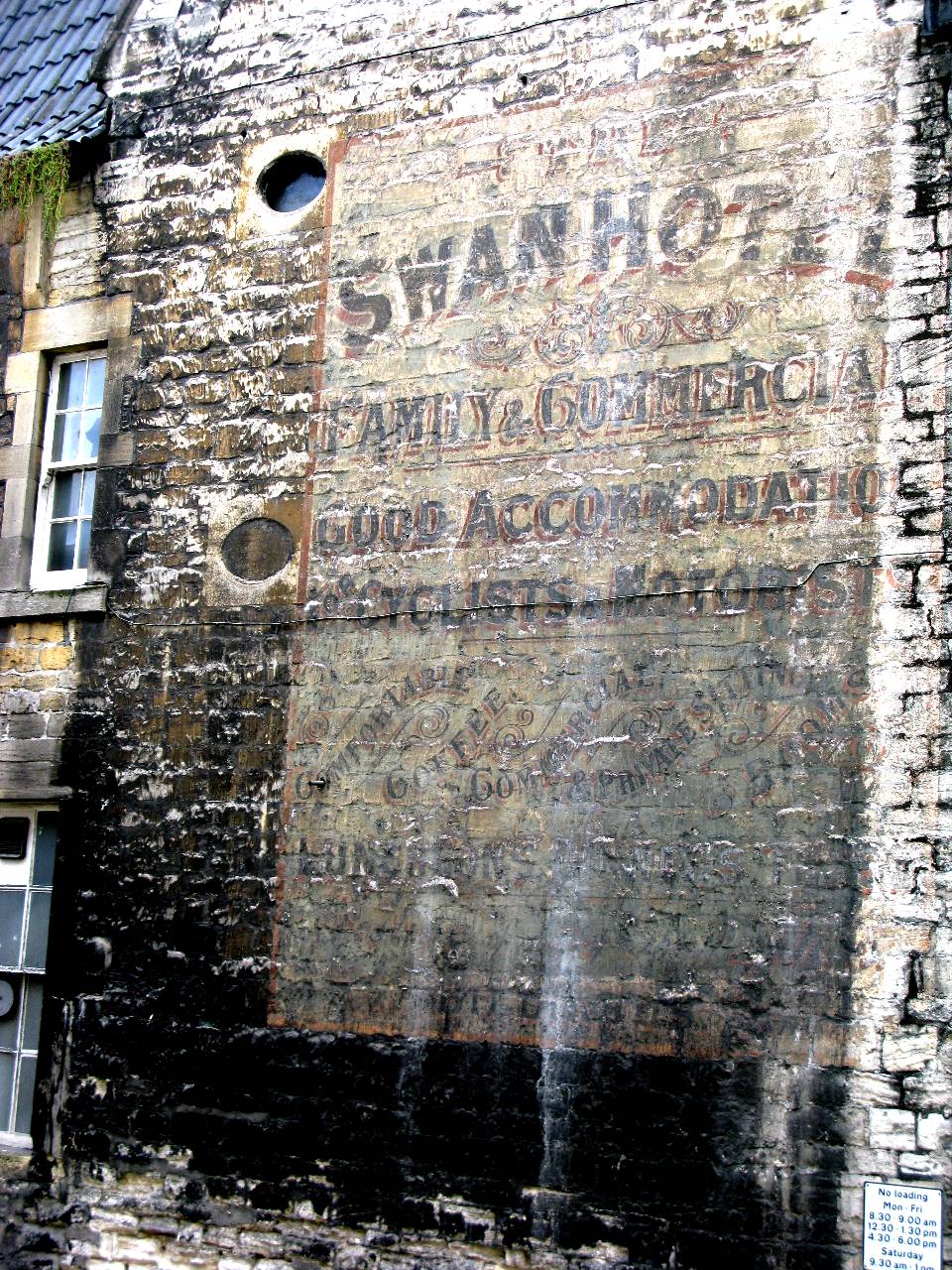 The side of the Swan Hotel - contrast increased Family and Commercial Good Accommodation Cyclists & Motorists