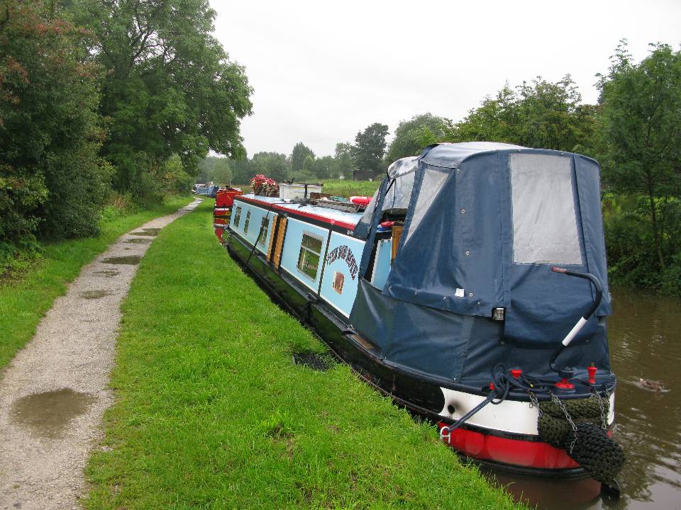 Friday 5th September 2008 Location: Furness Vale, Derbyhire, Peak Forest Canal Today: 1 miles, 0 locks. Total distance: 1660 miles. Total locks: 1188 We drove up from Cornwall yesterday morning and spent the afternoon visiting my mother in Wiltshire. I am sorry to say that she has really gone down hill over the last 12 months. She is 87 now and is looking very frail. It is hard to believe how much she has changed in the space of just one year. Spent a very pleasurable evening with my sister, unfortunately, my brother in law was working nights so he could not be with us. Stayed the night at my sister’s house and woke early the following morning due to the dogs being restless. Left around 05:30 and drove back to the marina. It was an awful journey as it was chucking it down with rain the whole way. In fact it rained constantly all day. We returned the hire car and were charged £100 excess due to some scratches on the front and rear passenger doors. At some time within the first two days of arriving in Porthleven, some kind moron decided to use a sharp object to scratch both doors. The car parked in front of ours was also scratched on both doors. Luckily, we took out the maximum insurance with the minimum excess. Had we not taken out the maximum insurance we would have been looking at a bill for £650, all thanks to some brainless idiot. The first thing we did when we got back to the boat was light the fire. It didn’t take long to warm the whole boat up once the fire was well and truly lit. We moved out of the marina mid afternoon and moored up at the first spot we found as it was pouring down. Our preference was to get soaked rather than spend a night in the marina as we are not keen on marina life with the associated lack of privacy. Saturday 6th We walked the four mile round trip to Tesco with the dogs – a lovely walk and it stayed dry the whole way. It rained almost all night and the canal level has risen a few inches since we moored up. There is a river in the valley just below our mooring and the river that flows through the valley is well flooded. We have had an awful lot of rain over the past 24 hours. We are going to spend the weekend at this lovely spot and rest up after our busy few weeks in Cornwall. Current Mooring