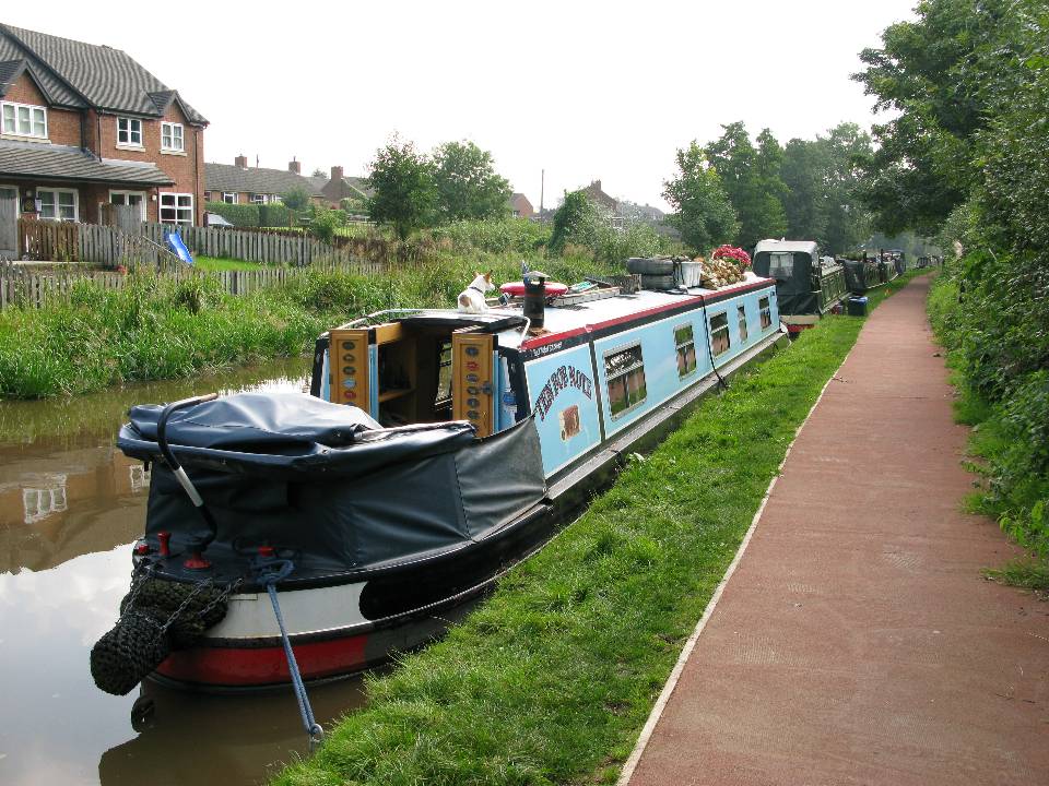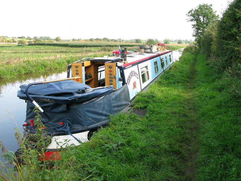 Thursday 18th September 2008 Location: Aston Lock, Staffordshire, Trent and Mersey Canal Today: 4 miles, 5 locks. Total distance: 1713 miles. Total locks: 1216 A late start by our standards, we pulled the pins at 09:00. We wanted to arrive at Stone mid/late morning to stand some chance of finding a spot to moor for the night. Before setting off, we phoned around looking for the best price for diesel in the area as we were getting low. Canal Cruising at Stone was best at 79p per litre. Stone Boatbuilding, two hundred yards away from Canal Cruising were asking 83p per litre – makes you wonder how they can sell the stuff at that price when boaters only have to travel a little way further to save 4p per litre. Filled up with 142 litres which should last us for a little while. We found a spot to moor just below the bottom lock, a boat was taking off just as we arrived. It’s always very busy around Stone. Had lunch then walked up the main street and picked up some sausages and bacon at the local butcher. On returning to the boat, we found boats breasting up and the tow path was even busier than it was earlier. We decided we wanted a bit of peace and quiet so pulled the pins and headed off looking for some nice countryside. Just as we were moving off, a boat arrived and was ecstatic to be able to jump into the spot we had just vacated. We travelled on for another couple of miles and found a lovely peaceful mooring spot about half a mile south of Aston Lock. Towns are not for us. Current Mooring