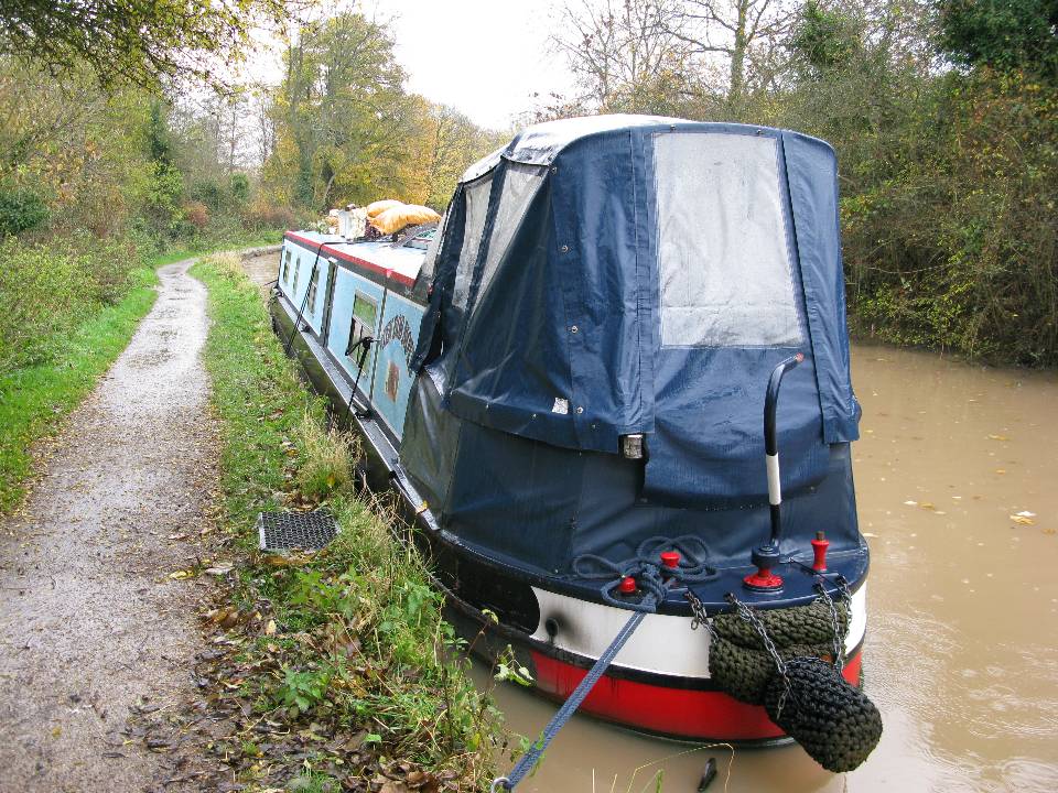 Thursday 13th November 2008 Location: Radford Semele, Warwickshire, Grand Union Canal Today: 2 miles, 0 locks. Total distance: 1868 miles. Total locks: 1281 It was quite noisy during the night, the police helicopter was hovering overhead for about half an hour around 03:00 this morning. Friday 14th Took the dogs out for a long walk this morning as they didn’t get out much yesterday due to the wet weather. We found an old disused railway line that I knew went towards Long Itchington and the canal (GPS track here). We ended up walking a lot further than I had planed as it turned out to be just over nine miles round trip, I should have consulted the maps before setting off along it. Still, the weather was nice and it was a very pleasant walk. It wasn’t quite so pleasant for Archie and Mabel on their return to the boat as they were both filthy and had to each have a shower – not their favorite activity. The disused railway line is very walkable for most of it’s length, it is in better shape than the tow paths – to be fair though, we have had an awful lot of rain over the last week and the tow paths get more traffic. Current Mooring