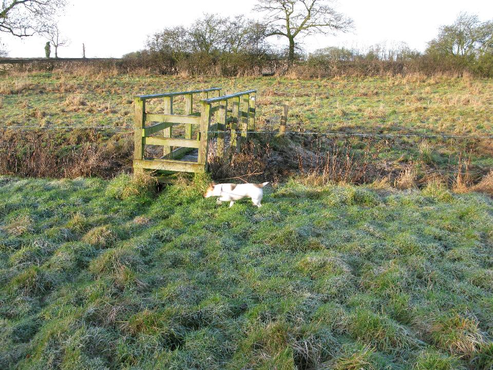 Monday 15th December 2008 Location: Newbold, Warwickshire, Oxford Canal Today: 5 miles, 0 locks. Total distance: 1902 miles. Total locks: 1307 Decided to head back to Rugby today as the weather was quite nice. I want to be around the Rugby area for a while as my son Glenn is thinking of popping along for a visit and needs a access to handy train station. I will most probably spend Xmas in the Rugby area now. Set the bread maker up as I knew the engine would be on for at least two hours and I ran out of bread last night. The bread was ready just as I was filling up with water. Pulled the pins and reversed back to the winding hole which used to be the entrance to the Brinklow arm. Reversed the stern into the hole is it looked to be the easiest way to turn due to trees causing an obstruction on the far bank and the funny angle into the old arm. Big mistake – the stern became well and truly stuck due to lack of depth. Had to get the pole out and pole the bow around – first time I have ever needed the pole. The winding hole could do with a little bit of dredging…. Carried on down to Newbold where I filled up with water etc. Decided to moor up at the Newbold visitor moorings and have a look around the area as I have never stayed here before. Wandered down into the village (if you could call it a village, it is more like the outskirts of Rugby). There is a reasonably sized co-op store with a free cash machine and a chip shop. I have heard good things about the chip shop from other boaters in the past so may give it a try. The magnet effect has happened again. With all of the free mooring spaces here, another boat has moored right up behind me. They are also burning ordinary house coal (as against the usual smokeless) and the smell coming in through my roof vents is none too pleasant at times. I couldn't care less what they burn if I didn't have to smell their smoke. Am I turning into a Victor Meldrew ??? Had a quick look on the GeoCaching web site and found a cache about a mile and a half away so headed off with Archie to see if we could find it. To get to it, we had to cross a flood plain that was in a bit of a mess after all of the rain at the weekend. Still we made it there and found the cache – a very pleasant walk in an area that is new to us and had it not been for the cache, we would never have ventured there. I like this GeoCaching lark. Current Mooring