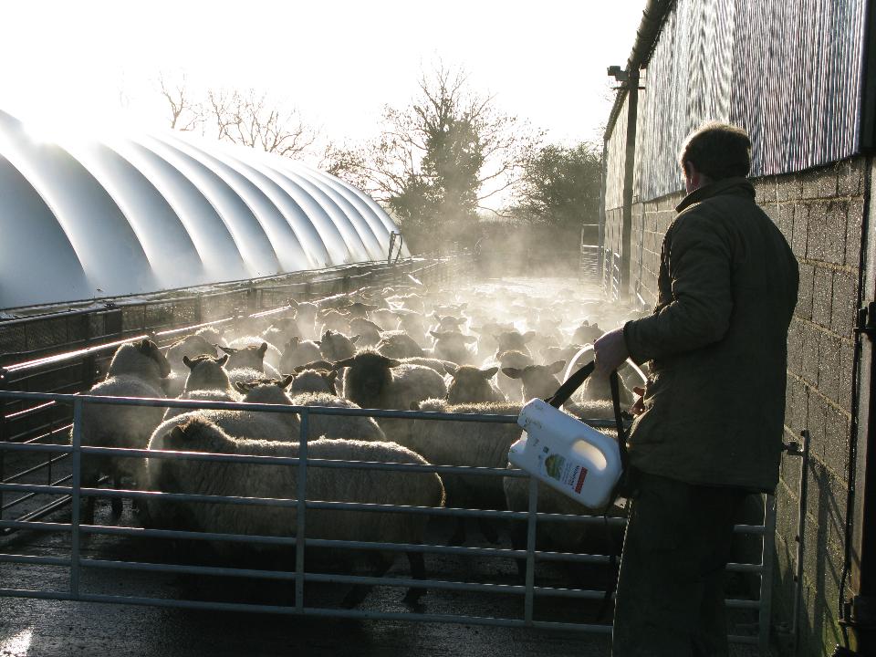 Steam rising off sheep. The farmer told me that it was because they had just been walked for a mile from their field to the farm