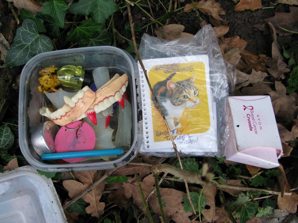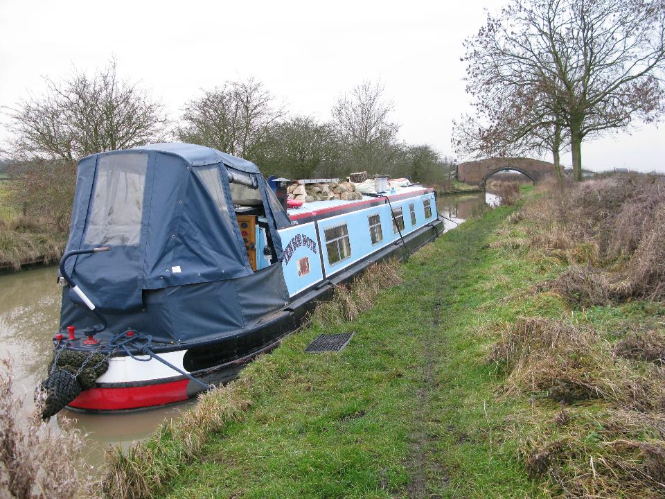 Wednesday 24th December 2008 Location: Hillmorton, Warwickshire, Oxford Canal Today: 6 miles, 3 locks. Total distance: 1908 miles. Total locks: 1310 I have been at Newbold for 9 days, I think it must be the longest that I have ever stayed in one location. My son Glenn came to visit last Saturday and stayed the night. We went out for lunch in The Barley Mow pub and had a very pleasant time together. Glenn is now down in Cornwall for Xmas. I received an email (Thanks Tony) advising me that there was a cache not too far from where I was moored in Newbold. I went looking for it yesterday afternoon but didn’t find it. I returned this morning and this time I found it – photo below. I also came across the old canal tunnel that used to form part of the North Oxford Canal. It fell into disuse when the canal was shortened and was replaced by the current Newbold tunnel. The entrance is bricked up now but there are a couple of holes so that bats can get in and out. I decided to move on today as I fancy being out in the country for Xmas. I pulled the pins around 09:00 and headed south, stopping at Tesco in Rugby on the way. While moored near Tesco, I came across Derek and Dot on nb Gypsy Rover with their daughter Tracey. We had a good chat while Derek was filling his water tank. Nice to meet them at long last. Met up with Iain and Alison on nb Gosty Hill so topped up with diesel and coal. Not far from the top of the Hillmorton locks, I stopped to chat to a lady that I have passed before. She lives alone on her boat with her dog and has done so for the last 13 years. She was telling me how much life on the canals has changed in recent times and it hasn’t been for the better. Finally moored up a couple of miles south of Hillmorton. A lovely quiet spot with no one else around. Current Mooring