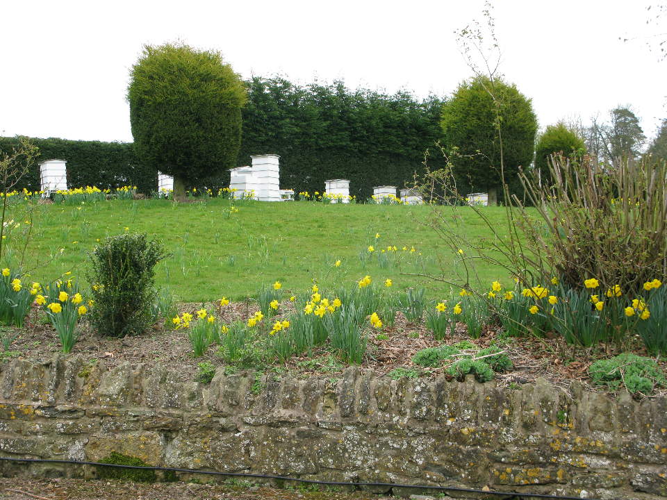 Another glorious day today so decided to stay put in this lovely spot and do the washing. Actually managed to dry the clothes outside on the clothesline, first time in a very long time. Went for a very pleasant circular walk up to the village of Priors Hardwich – GPS track here – just under 5 miles round trip. It’s a lovely little village and well worth a visit, some photos below. We are on a go slow at the moment because we are waiting for the coal boat Gosty Hill to catch up with us so we can stock up with coal before heading on down south where the coal is upwards of £2 per bag more expensive. Expect Gosty Hill to catch up around Friday. Beehives near the Butchers Arms pub